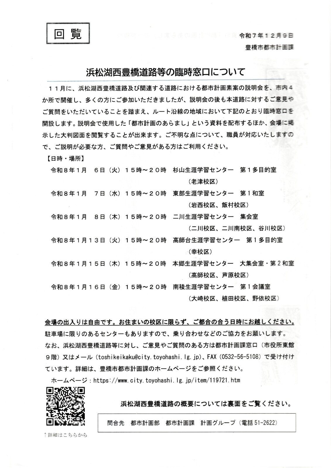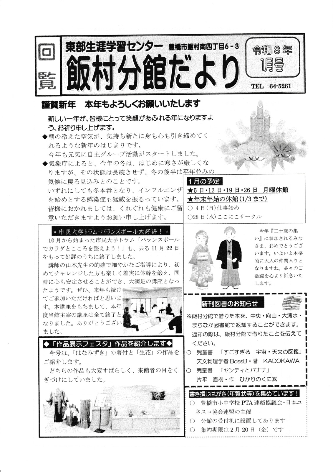 2026年(令和8年)1月回覧板」 2026 1/06 回覧板 2026年1月6日 目次タートル通信 アリンコ広場 12月度 東山バス運営協議会(定例会)の報告 令和7年度 神事係会計報告 飯村分館だより すこやかの里だより 浜松湖西豊橋道路等の臨時窓口について 広報とよはし 令和8年1月号 回覧板 よかったらシェアしてね! URLをコピーしました! URLをコピーしました! 2025年(令和7年)第9回組長会議資料 関連記事 2025年(令和7年)12月回覧板 2025年12月6日 2025年(令和7年)11月回覧板 2025年11月6日 2025年(令和7年) 10月回覧板 2025年10月3日 2025年(令和7年)9月回覧板 2025年9月3日 2025年 (令和7年) 8月回覧板 2025年8月2日 2025年(令和7年)7月回覧板 2025年7月2日 2025(令和7年)6月回覧版 2025年6月3日 2025年(令和7年)5月回覧板 2025年5月3日