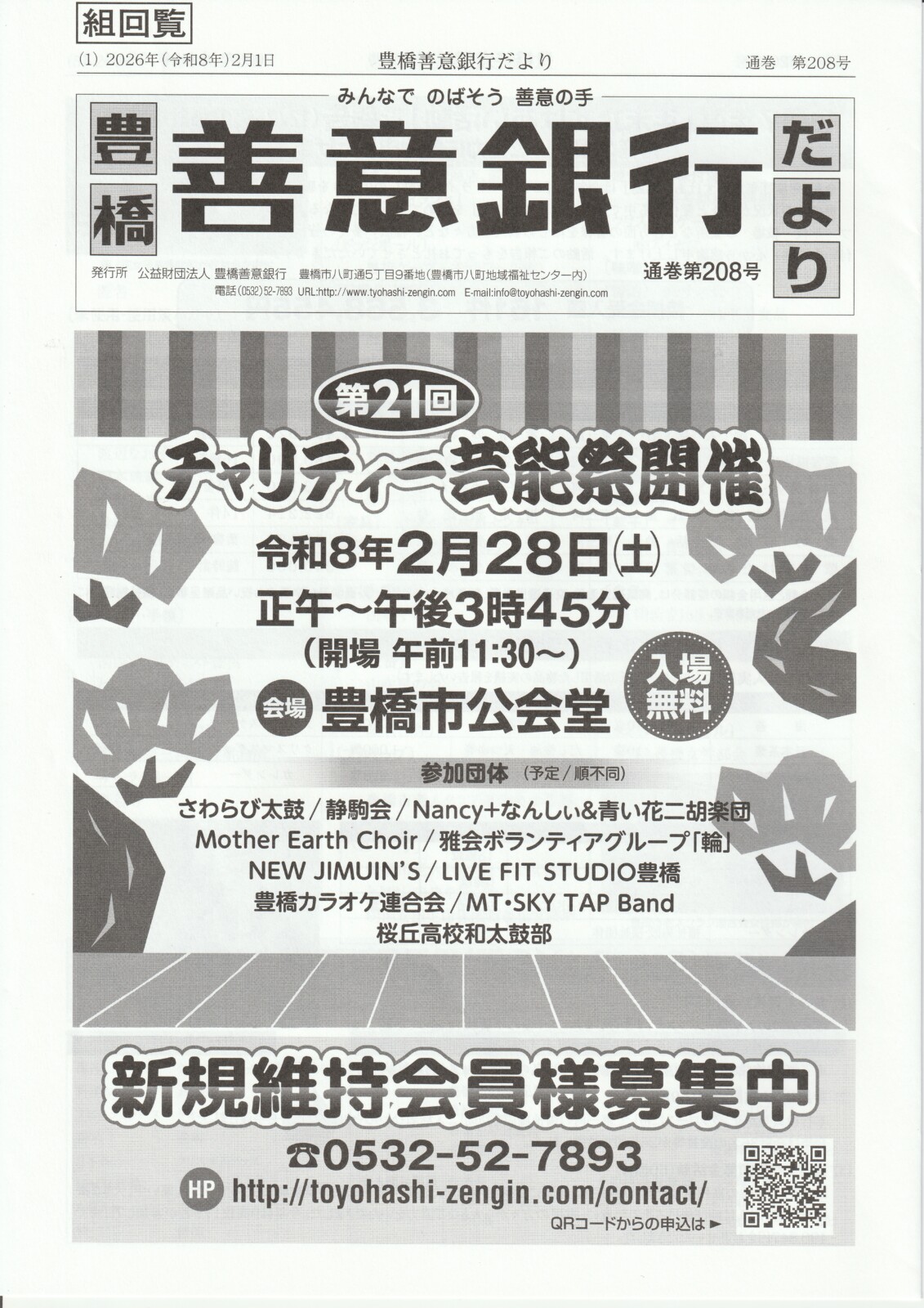 2026年(令和8年) 2月回覧板 2026 2/03 回覧板 2026年2月3日 目次東山自治会規約改正のお知ら 入学奉告祈願祭のお知らせ 見守りボランティア活動にご理解・ご協力を 第18回 津軽三味線 雅會発表会 飯村分館だより 東山バス運営協議会(定例会)の報告 タートル通信 アリン子広場 豊橋善意銀行だより 広報とよはし https://www.city.toyohashi.lg.jp/secure/121778/2602.pdf 回覧板 よかったらシェアしてね! URLをコピーしました! URLをコピーしました! 2026年(令和8年)1月回覧板」 2026年(令和8年)第10回組長会議 関連記事 2026年(令和8年)1月回覧板」 2026年1月6日 2025年(令和7年)12月回覧板 2025年12月6日 2025年(令和7年)11月回覧板 2025年11月6日 2025年(令和7年) 10月回覧板 2025年10月3日 2025年(令和7年)9月回覧板 2025年9月3日 2025年 (令和7年) 8月回覧板 2025年8月2日 2025年(令和7年)7月回覧板 2025年7月2日 2025(令和7年)6月回覧版 2025年6月3日